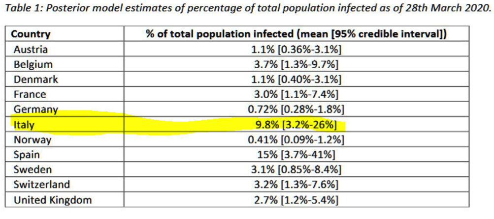 Covid-19: l’Imperial College stima circa 6 milioni di contagi in Italia